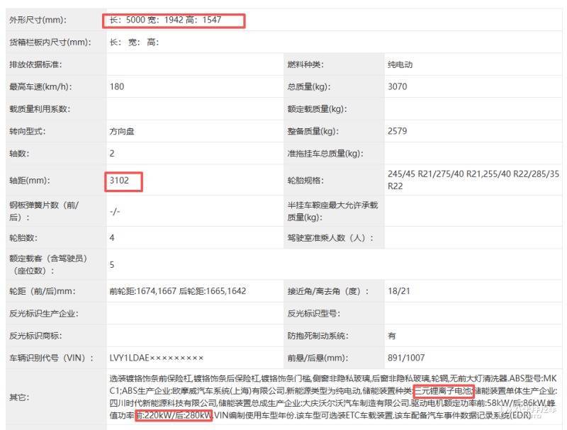 双电机版块车型匹配三元锂电板,前后双电机的最大输出功率别离为220千瓦和280千瓦。