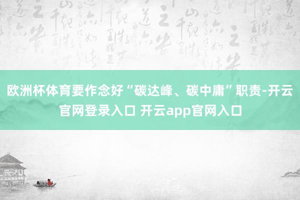 欧洲杯体育要作念好“碳达峰、碳中庸”职责-开云官网登录入口 开云app官网入口