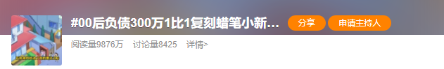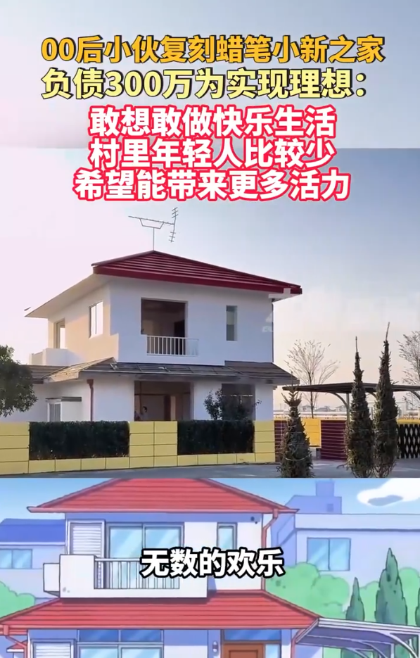 近日,“00后欠债300万1比1复刻蜡笔小新之家”话题登上热搜。