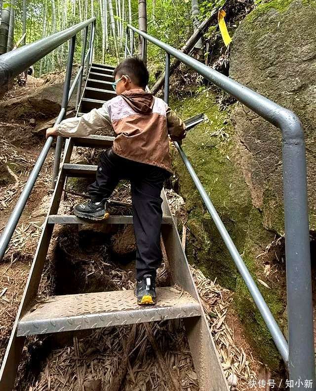 约略是男孩天性使然,周一围在总共这个词爬山经由中皆不需要抱着或背着男儿。4岁的弟弟能够孤立攀爬阶梯,他提神翼翼地用双手牢牢收拢雕栏,不错看出平时没少进行攀爬类的步履。