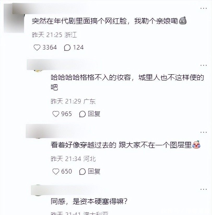 以致有东说念主启动怀疑是不是老本硬塞的,大眼睛和尖下巴极少都莫得融进年代剧中。