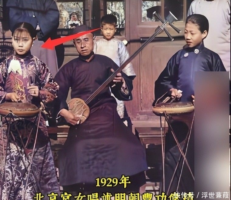 身上衣服一件精采的旗袍,脸上还化着全妆,动作一个唱曲卖艺的,不好好专注我方的手上器乐,反倒是把元气心灵全用在打扮得如诗如画上了。
