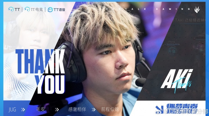 经两边友好交流与协商,原TT英杰定约分部打野选手毛安(ID:Aki)断开邻接,即日起厚爱离队。