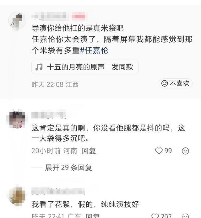 看到这里,有网友叹惜说,导演你给任嘉伦扛得是真米袋吧?另一个网友说,细目是的确啊,你没看他腿王人在抖吗?其实,这里扛的不是真米袋,麻袋其实很轻,任嘉伦隧说念等于演技好,把一个轻轻的袋子扛出了千钧重负的面容。