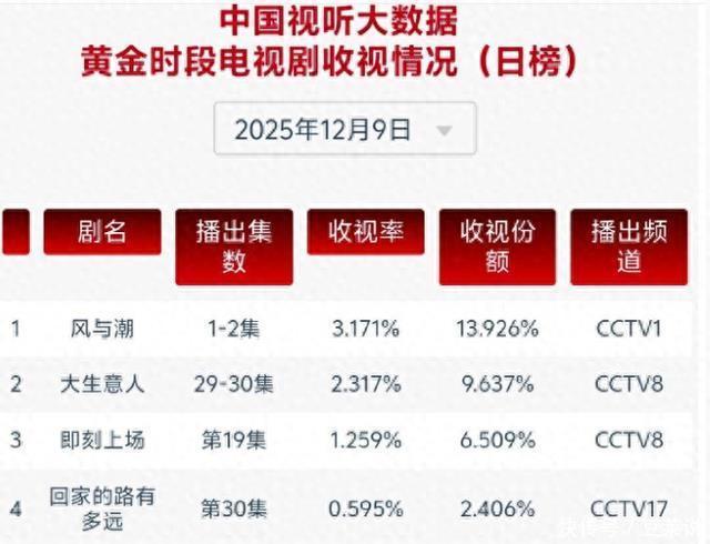 这几天,央视一套播出的《风与潮》掀翻了收视飞扬,首播收视率就达到3.17%,把央视一套从倒数第一拉成收视冠军,涨幅普及40%,不得不说,这架势有拿央视一套年冠的趋势。