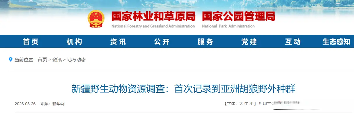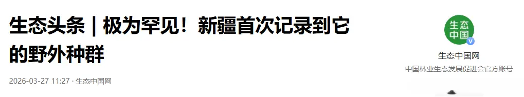 信息源流:生态中国网 生态头条 | 极为萧瑟!新疆初度记录到它的原野种群 2026-03-27