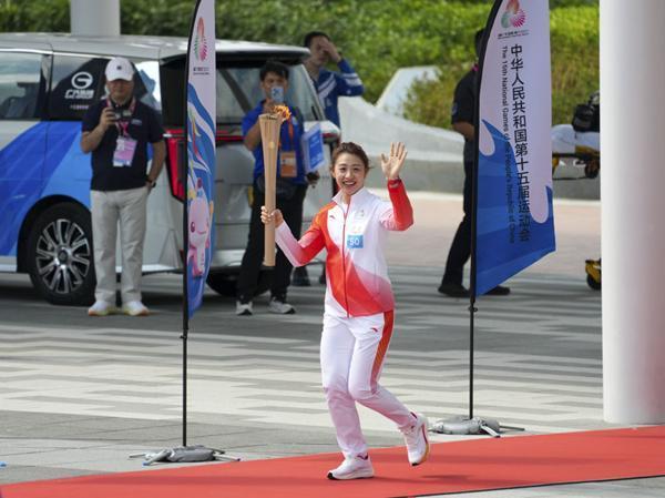 火把手佘缮妡在火把传递中。新华社记者 朱炜 摄